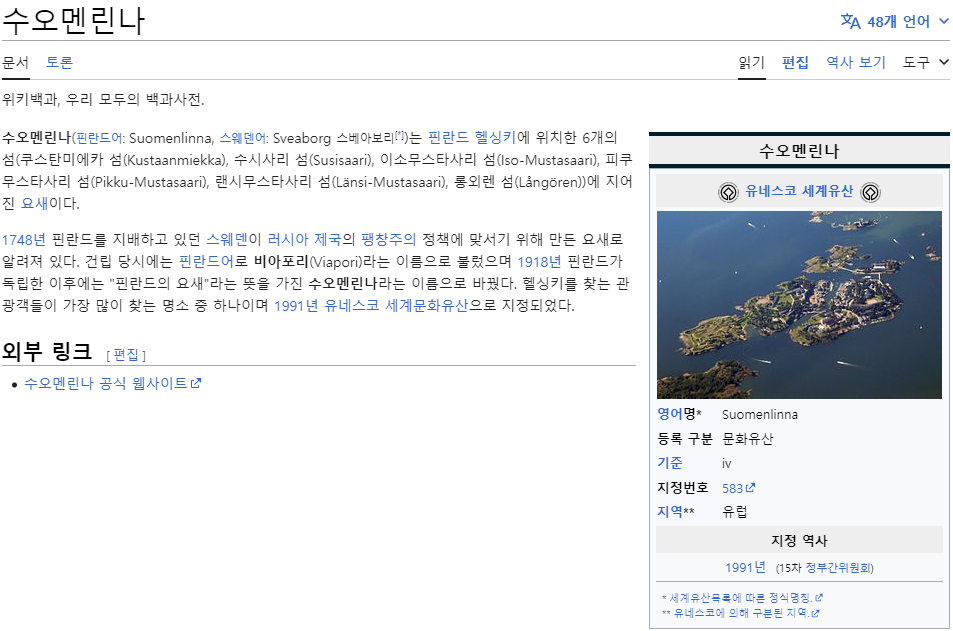 1일차는 수오멘린나를 마지막으로 마무리 했어요.
